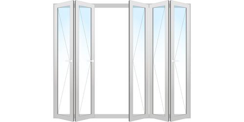 Profil: Alu MB-86 Fold Line | Art: 5-teilige Faltschiebetür | Typ: L-L-R-R-R | Faltrichtung: Nach innen | Schwelle: Standard Rahmenschwelle 33,5 mm | Farben: RAL-Farben | RAL Textur: RAL-Farben Matt | Verglasung: 3-fach (warme Kante) | Schallschutz: Nein | Sicherheitsverglasung: Ja | Sicherheitsverglasung: Außen: VSG 6mm + Innen: VSG 6mm (Verbundsicherheitsglas) | Ornamentglas: Nein | Sprossen: Nein | Griffart: Standardgriffe | Griffe & Türband: Weiß (RAL 9016 Verkehrsweiß) | Rahmenverbreiterung: Nein |