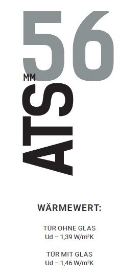 • Wärmewerte: Tür ohne Glas Ud – 1,39 W/m2K | Tür mit Glas: Ud – 1,46 W/m2K