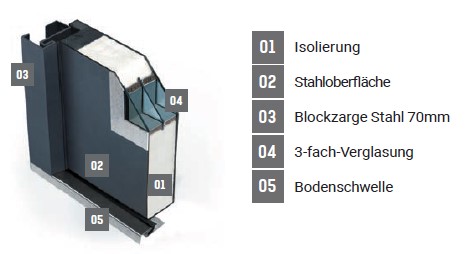 • Blatt: 56 mm starkes Türblatt. Energiespar-Holzkern mit Stahlummantelung