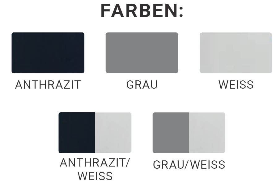 • Farbe beidseitig: Anthrazit – DB703, Weiss – RAL9016, Grau – RAL9007