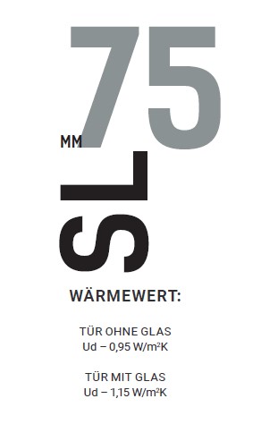 • Wärmewerte: Tür ohne Glas Ud – 0,95 W/m2K | Tür mit Glas: Ud – 1,15 W/m2K
