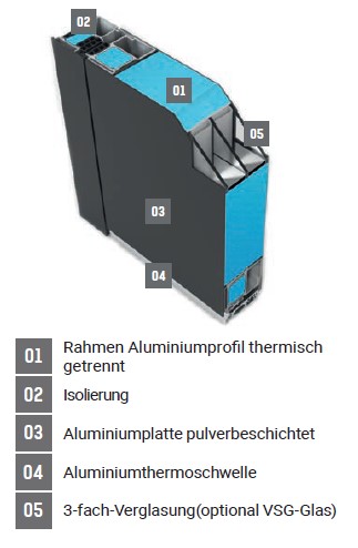 • Schwelle: Thermoschwelle Alu (thermisch getrennt)