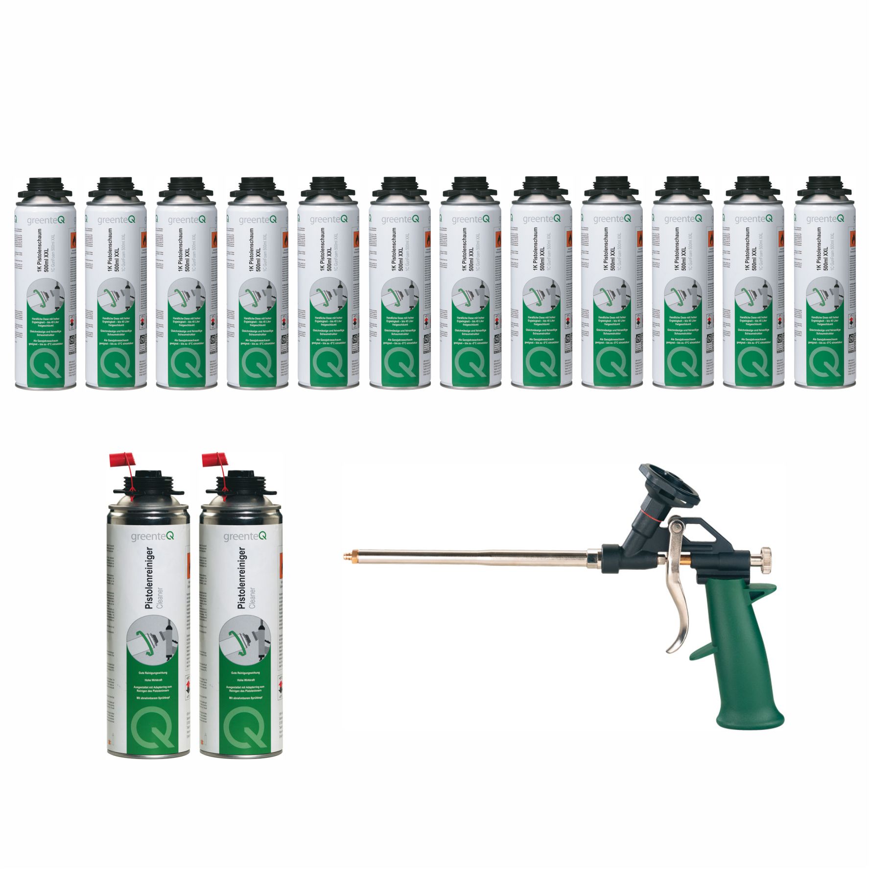 greenteQ – Profi Set – 1K Pistolenschaum XXL E – 12 Stück + Pistolenreiniger – 2 Stück + Metallpistole – 1 Stück