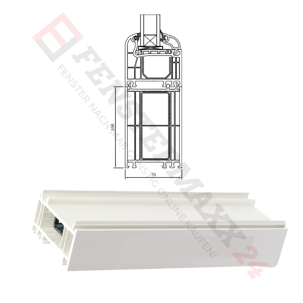 Die Rahmenverbreiterungen eignen sich für Fenster und Türen mit einer Einbautiefe von 70 mm.