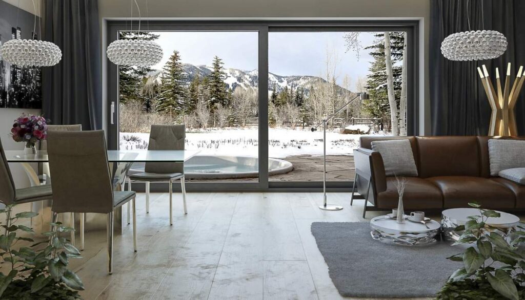 Große und zuverlässige Hebe- und Schiebetüren aus Aluminium in modernem Design, bestens geeignet sowohl für Einfamilienhäuser als auch komfortable Appartements oder Hotels.